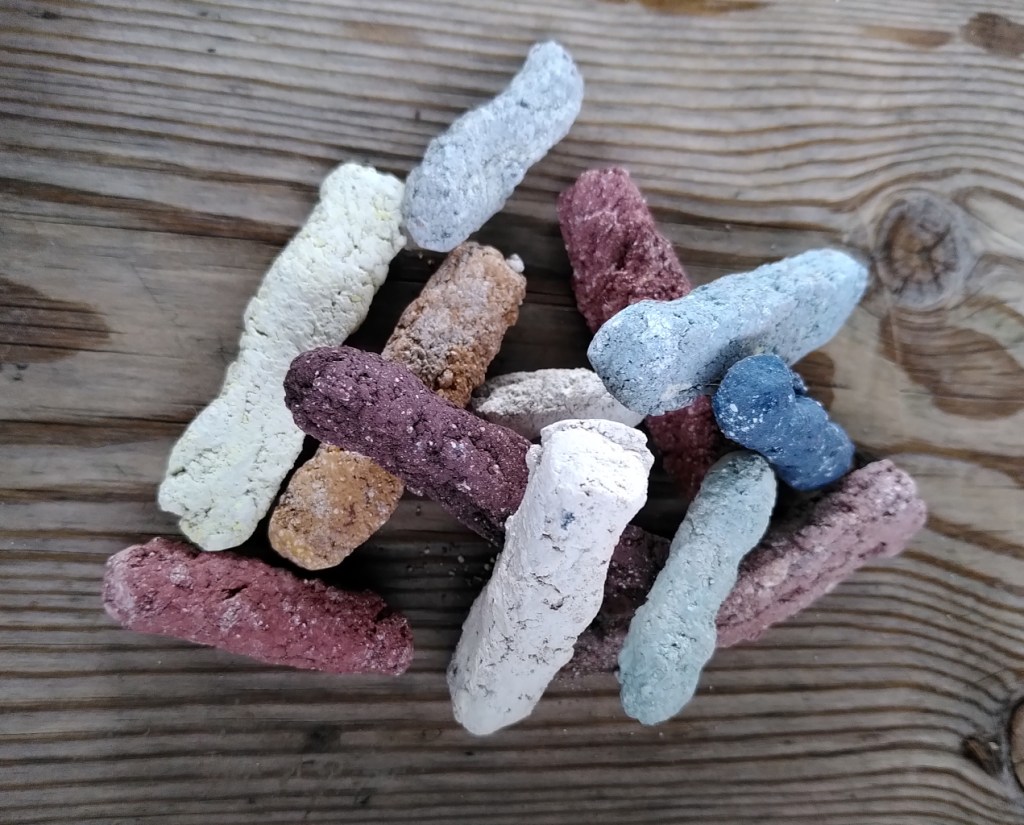 Home made pastels from natural pigments and chalk