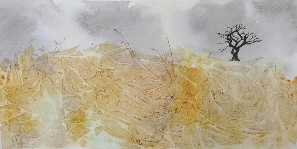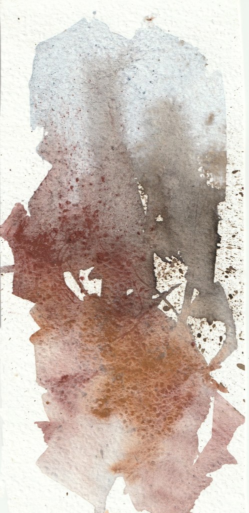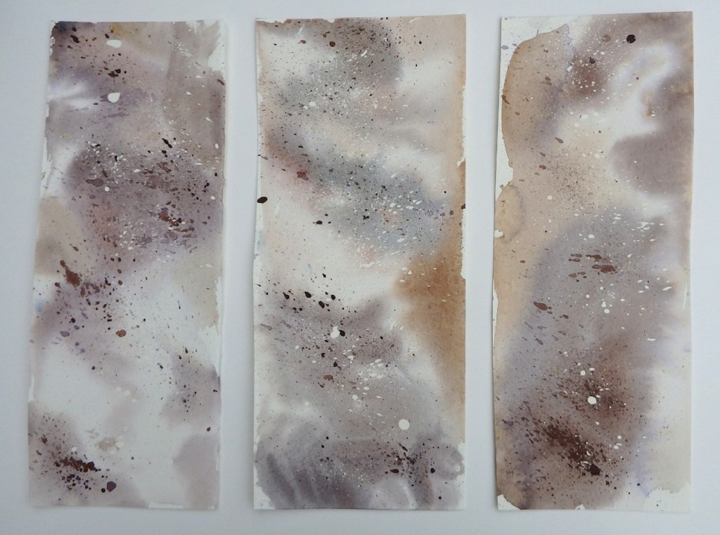 This gallery contains work in watercolour made drawing on nature as inspiration. Working with and from the natural world; using found objects to make patterns in the paint or to draw from, painting outside in the rain and letting rainwater shape the work and using natural mineral and botanical pigments in the work. Work has been made in Devon, North Wales and South London.